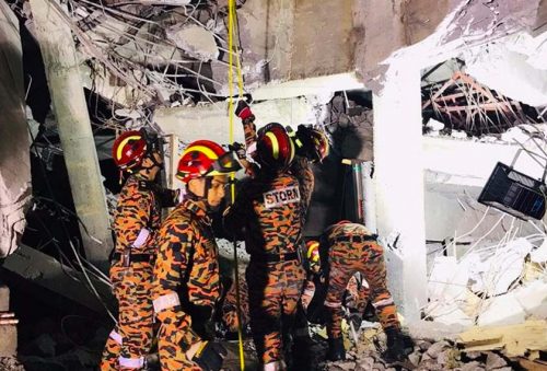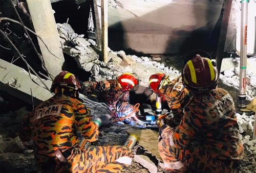 Gombak LRT站工地凌晨坍塌 三人受伤 23 May , 2019 | 民生关注 (吉隆坡23日讯)轻快铁鹅麦终站(Gombak LRT)一处正在兴建的建筑工地在今天凌晨坍塌,有三人被困在瓦砾中。 吉隆坡消拯局今早1时13分接获投报,即刻调动了46名消拯人员前往事故地点搜救。 当局救出了两名被困伤者,另有一名印尼籍伤者仍被压在瓦砾中,等待救援。 此外,当局也出动K9搜救犬 协助寻找其他可能的受困者。 目前搜救行动仍在进行。 (图片来源:消拯局) 分享