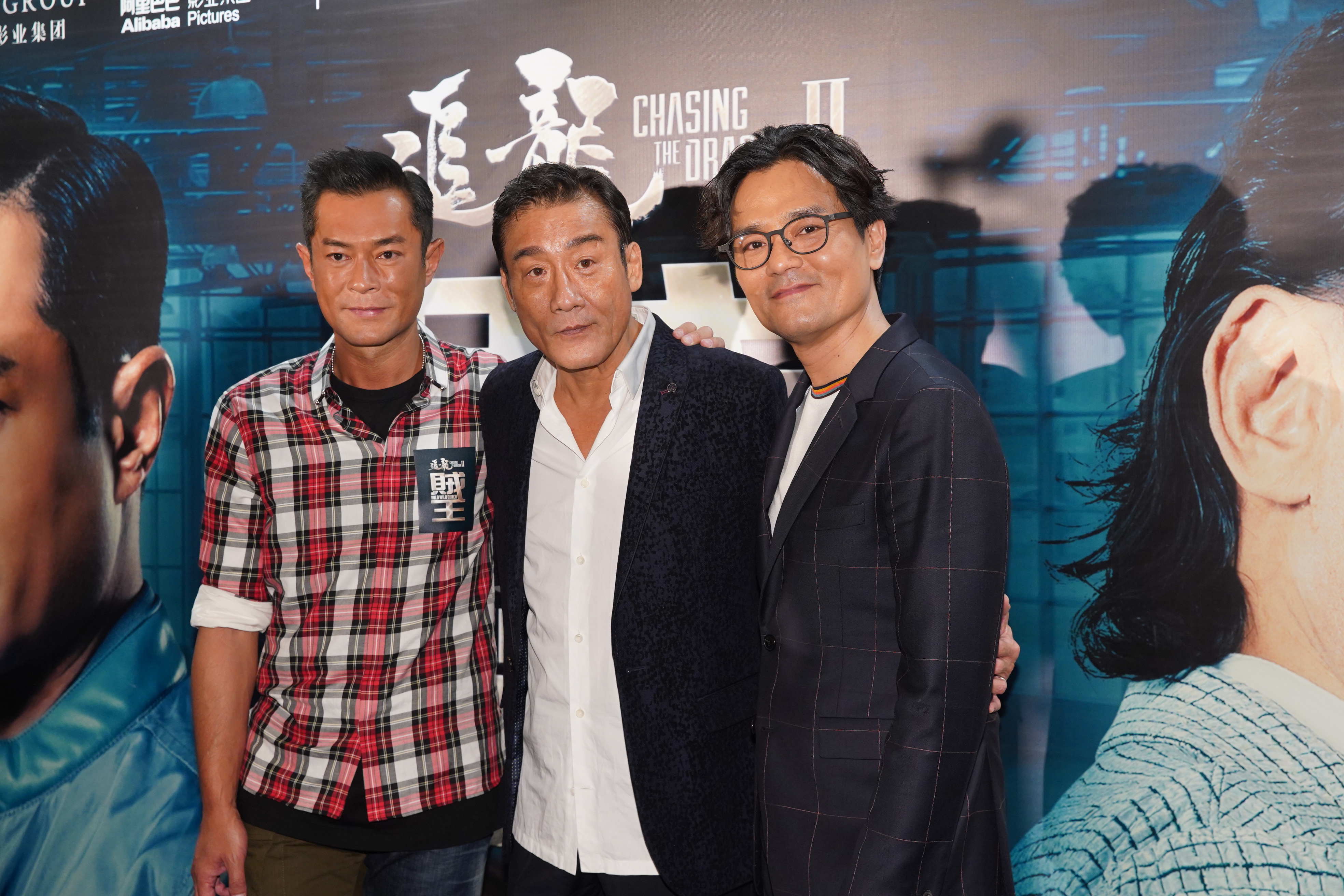 【首映礼】(香港直击报道)《追龙 II:贼王》导演之一关智耀表示拍摄过山车戏份时在场的工作人员都十分紧张,大赞梁家辉从容的专业演出。