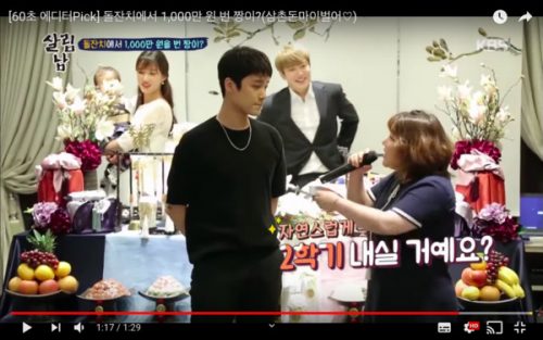 接着轮到李在真也举手回答问题,他欣然接受负责赞儿大学的下学期学费。听见两位团员愿意为赞儿教育费出钱,字幕组为崔敏焕打出内心OS:“省了1000万韩元。”见证FTISLAND团员间10年深厚友谊。