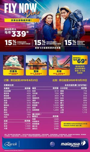 想出国旅游?有好消息告诉你!马来西亚航空(Malaysia Airlines)推出Fly Now机票促销!往返机票最低只需RM129!