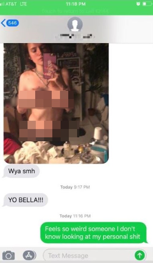 她突然在推特公布裸照,原来她被骇客威胁要散布裸体照片,她一气之下决定自己先发出来。综合报导,贝拉索恩表示,她一直受到裸照威胁,骇客声称拥有她的照片及影片。贝拉索恩痛斥这种行为很粗鲁,因此自己先公布照片,还有公开与骇客的对话内容。
