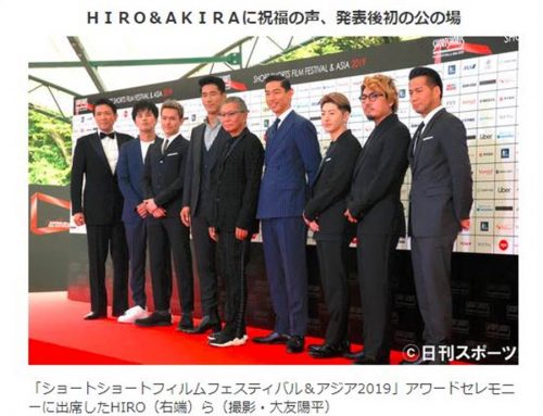 AKIRA和HIRO今现身东京“亚洲短片电影节2019”活动,在现场被媒体追问新婚生活如何“幸福吗?”AKIRA面露灿笑回应“谢谢”,满满幸福藏不住,但目前婚宴日期等细节仍未确定;而HIRO的老婆上户彩,日前也才对外证实怀上第二胎,且预产期就在下个月,对于即将二度当爸的心情,HIRO开心透露老婆身体状况很健康,同样感谢大家的祝福。