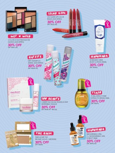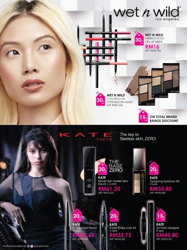 1.各大彩妆品牌均有提供折扣,包括Maybelline、wet n wild、Kate、Peripera、Silkygirl、CLIO、K-Palette等!