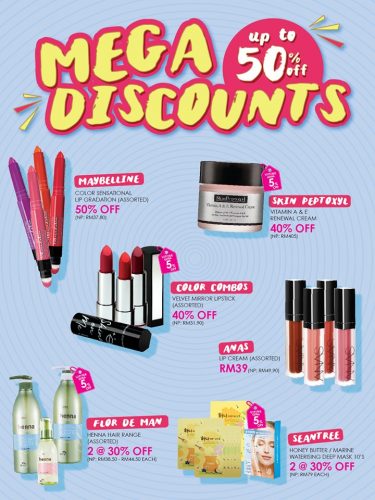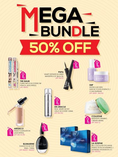 3.Mega Bundle第二件物品提供50%折扣,包括护肤品、洗头水、洁面露、面膜等!