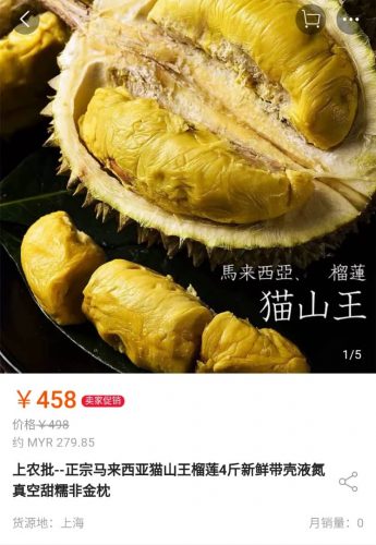 我国首批带壳猫山王榴莲,已在昨日出发,预计在19日抵达中国。而早在两周前,淘宝已有商家预先开卖猫山王,价钱竟介于人民币300至700元不等。