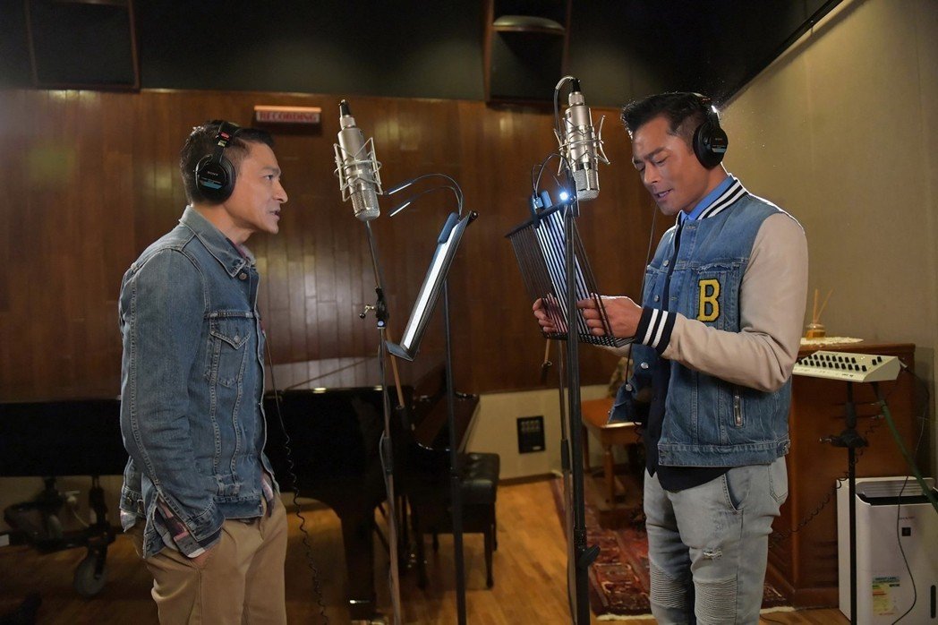 刘德华和古天乐为合作电影《扫毒2天地对决》演唱主题曲《兄弟不怀疑》,在刘德华面前,古天乐谦称自己唱歌业余,刘德华华闻言也笑说:“我到现在也都还是业余! ”