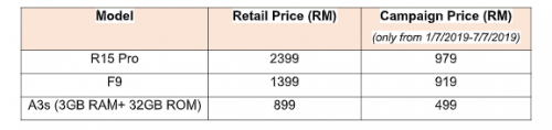 OPPO超值促销 现最低只需RM499即可购得手机 1 Jul , 2019 | 吃喝玩乐 OPPO推出超值促销,现最低只需RM499即可购得智能手机! 想买OPPO智能手机的朋友注意咯!Shopee 7.7 Orange Madness于日前已开始进行,OPPO也参与了这项活动,并推出各种独家促销及折扣礼劵,包括R15 Pro、F9及A3s,最低只需RM499! 此外,当你购买产品达特定数额,你将可获得额外的折扣礼劵! 分享