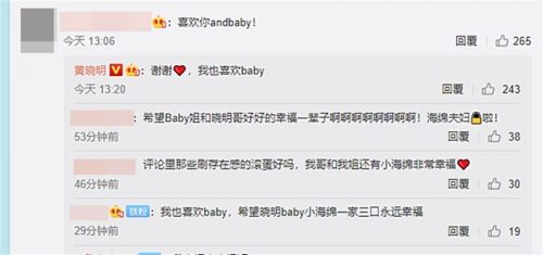 去年范冰冰因逃税风波重创事业,黄晓明和Baby就传出疑因税务问题低调离婚,但被否认,昨又传出将公开离婚,工作人员则指是假消息。今下午黄晓明发文宣传新片《烈火英雄》,许多网友更关心两人婚姻,说:“喜欢你andbaby!”没想到黄晓明亲自留言:“谢谢❤️,我也喜欢baby”,暗示和老婆关系甜蜜,其他网友说:“希望Baby姐和晓明哥好好的幸福一辈子啊”、“评论里那些刷存在感的滚蛋好吗,我哥和我姐还有小海绵非常幸福”、“厉害了,被翻牌了”、“人家好好的,一天没事干就盼着人家离婚”。