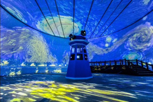 11个主题空间少不了著名的作品《星夜》、《十二朵向日葵》、《盛开的杏花》、《罗纳河上的星夜》等等,当中还有7.8米高超大的星空主题空间,让粉丝们可以细味传奇艺术家Van Gogh的一生!