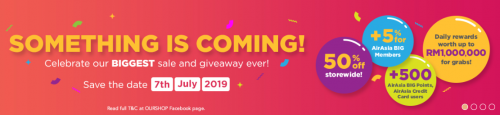 有好康!亚航的网购平台OURSHOP本月迎来一岁生日,特别推介所有商品折扣高达50%*的限时优惠!这网购优惠仅限72小时,从2019年7月7日至2019年7月9日为止!