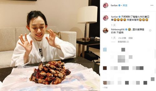 范范的烧鸡翅照也引出好姐妹梁静茹留言了