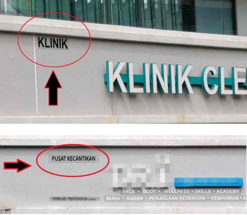 “今天就教大家一个简单辨认的方法。凡是拥有市政局执照的商家,都必须展示商业分类。如果是医疗诊所会在店面招牌展示为 Klinik,如是美容院会在店面招牌展示为Pusat Kecantikan(美容院)。”