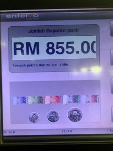 前988电台DJ阿陆周日(6日)在面子书贴文申诉,自己在KLIA停了5天22小时4分钟,但却要缴付RM855的停车费!