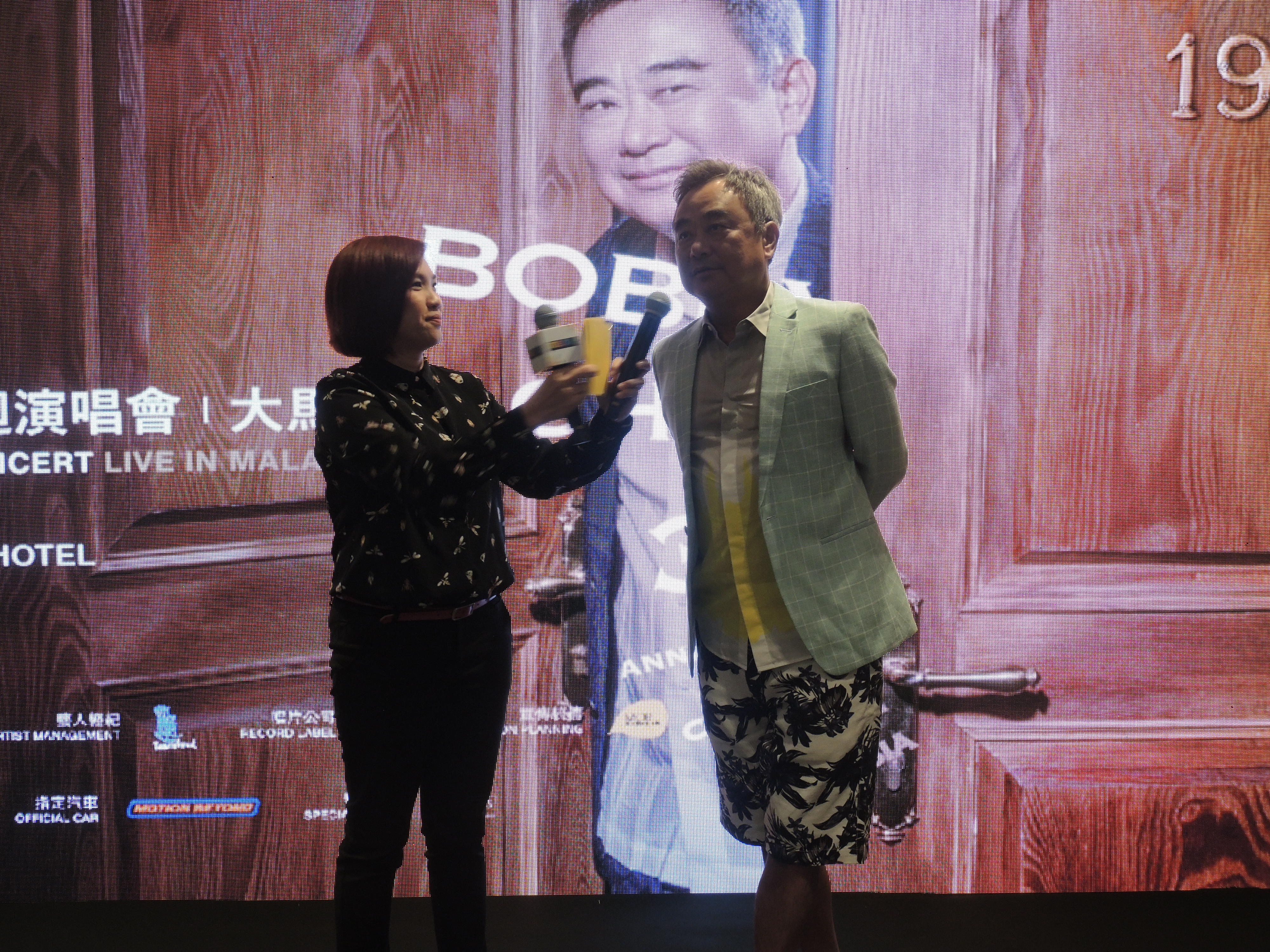 陈升在记者会上撩主持人(左)~惹笑全场!