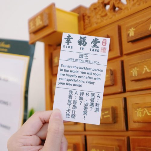 康乐的朋友看过来!台湾第一古法手炒黑糖珍珠鲜奶创始品牌幸福堂要将康乐开设第16家分店啦!活动期间,凡购买第二杯饮料,即可享有半价折扣!同时,还可以获得免费抽签测试你的爱情运势哦!如果,幸运儿抽到签王,更有机会赢取免费的饮料,感觉好好玩哦!