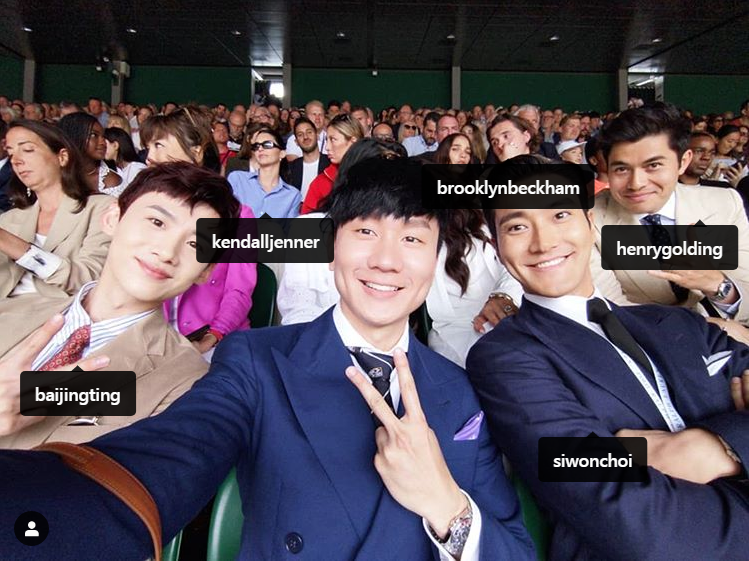 像是始源右后方,有名著白西装对着镜头灿笑的男子,仔细一看,此人竟是《疯狂亚州富豪》的亨利高汀,而贝克汉的长子布鲁克林及其女友也入镜,还有眼尖的网友发现超模坎达尔詹纳也出现在观众席中,一张照片意外捕捉到不少国际大咖,让网友看了直呼“这画面实在是太梦幻了!”
