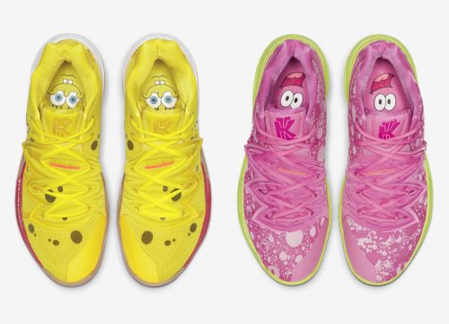 为欢庆海绵宝宝20周年,Nike特别携手与Spongebob Square Pants推出联名鞋款,包括3款Kyrie 5与两款Kyrie Low2!每个鞋款的设计都注入了动画的角色元素,如海绵宝宝、派大星、章鱼哥、蟹老板等,非常可爱!