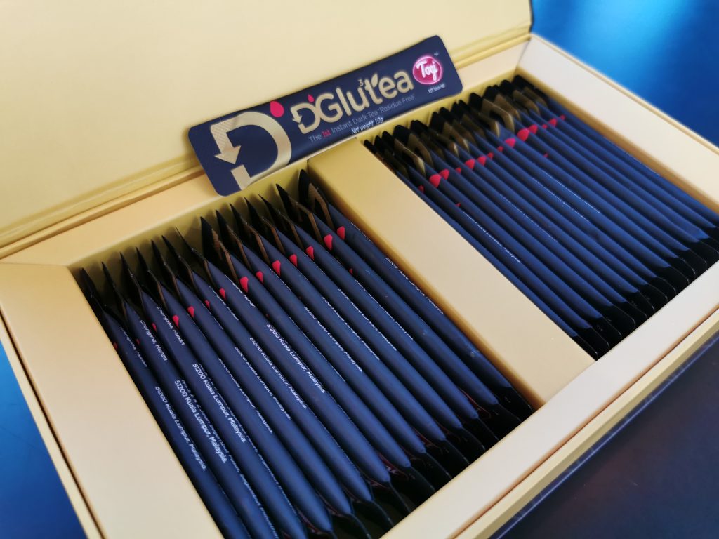 D’Glutea来自大马拥有54年老字号的同济药行与来自湖南湘茶高科技有限公司,携手共同研发一款为“三高”群众量身定制全新速溶黑茶,其主要功效就是降血糖、降血脂、降血压,促进新陈代谢,延年益寿。