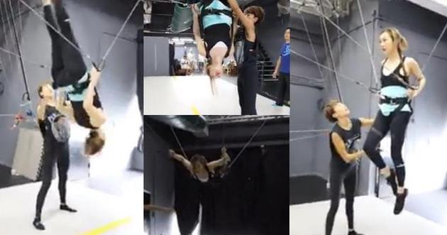 Sammi郑秀文在社交网上载一段吊钢丝排练个唱的视频,见她被吊高练习翻筋斗好像很轻易,原来她在个唱最后冲刺前曾不慎弄伤后腰。