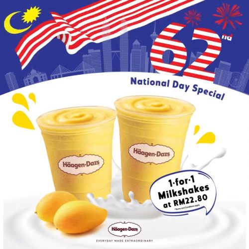 Haagen-Dazs国庆推出Milkshakes奶昔买一送一促销 6 Aug , 2019 | 吃喝玩乐 有好康!Haagen-Dazs推出Milkshakes奶昔买一送一促销! 配合国庆日的到来,Haagen Dazs从即日起至8月31日,将在全马各Haagen Dazs推出Milkshake奶昔买一送一促销!简单来说,就是Haagen-Dazs奶昔两杯现只需RM22.80! 此外,凡于活动期间购买Haagen-Dazs固本,也可获得回扣优惠!价值RM80的股本,现只需RM62即可购得! 分享