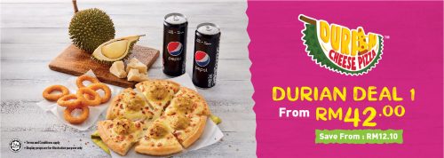 Pizza Hut榴莲芝士披萨单点要价为RM44.50!目前,Pizza Hut有推出促销优惠,共有三种不同的套餐可以选择;