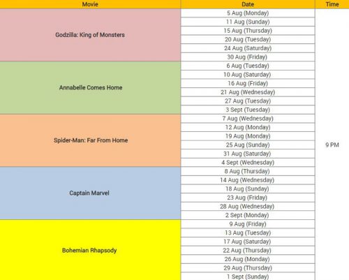 该电影院将会播放的电影包括Godzilla:King of the Monsters、Annabelle:Come Home、Spider-Man:Far from Home以及Captain Marvel等等!你可以前往GSC柜台或网站购买,售价为RM18!