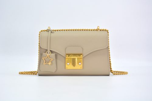 2019年春夏系列PAPRIKA真皮星星链包Dazzling Star,以闪耀星星作为设计灵感,采用了全真皮制作,精致的手掌纹理压纹设计,外形优雅小巧。配有牛角珠的金属锁扣是真皮星星链袋系列的独特象征,而流线的包包掀盖配以全新流线设计,突显简洁。