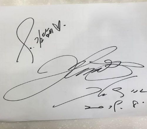 30岁男星金宇彬于前年5月确诊鼻咽癌,停工接受治疗至今,去年夏天病情好转,陆续有新照曝光,而近期更频有网民在社交网晒出金宇彬的签名照,8月14日位于全罗北道的某雪糕店,便在官方社交网上传金宇彬为店员的签名,同时间亦上传韩片《毒战寒流》导演李海暎的签名照,未知二人是否相约在店内洽谈合作事宜。