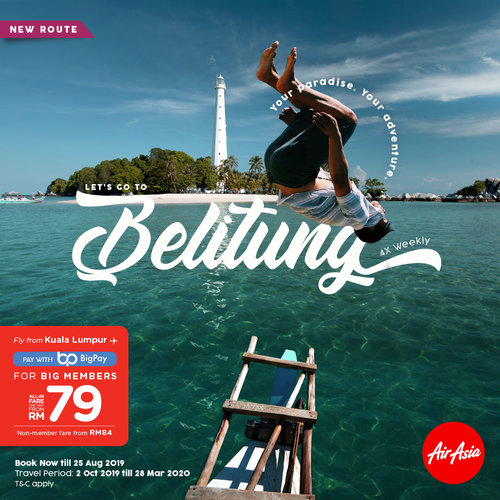 作为首家从吉隆坡直飞勿里洞的航空公司,亚航每周四趟航班将于2019年10月2日正式启航。勿里洞周围围绕着100个以上的小岛屿,拥有着原始的海滩和清澈的海水,为游客提供一个能进行各种水上活动及大自然环境优美的绝佳岛屿度假圣地。
