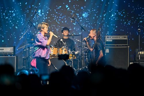 到了中场,Kit solo秀鼓艺,他笑对成员说:“给我solo多少少时间…我很多话想说,但别浪费时间了!”惹笑全场,接着Kit邀请特别嘉宾刘力扬出场合唱一起创作的新歌《一切都值得》。