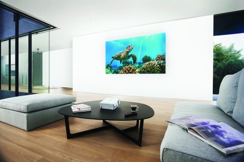 爱普生(Epson)推出室内投影图像精彩细腻的全球最小3LCD雅致雷射投影机EF-100后,电影迷们如今就能舒服的待在家里享受电影院体验。投影面积高达150寸的这款创新投影机结合了大型观影屏幕和灵活与使用性,同时将改变家庭影院的面貌。