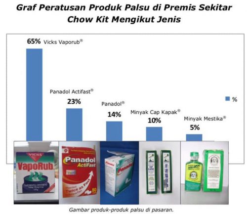 帖文说,卫生部近日针对吉隆坡秋杰一带的药房进行研究和检测,发现较多假药的产品分别是Vics VapoRub、Panadol Actifast、 Panadol,、Minyak Cap Kapal以及Minyak Mestika,而且这些药物都非常普遍。
