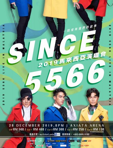 亚洲天团5566【SINCE 5566】马来西亚演唱会将由AC MUSIC ENTERTAINMENT举办,于于2019年尾压轴登场12月28日(星期六)亚通室内体育馆(Axiata Arena)盛大举办。而开票日期也确认9月7日(星期六)早上11点,于myticket.asia正式网上开卖,票价则从RM 138起。