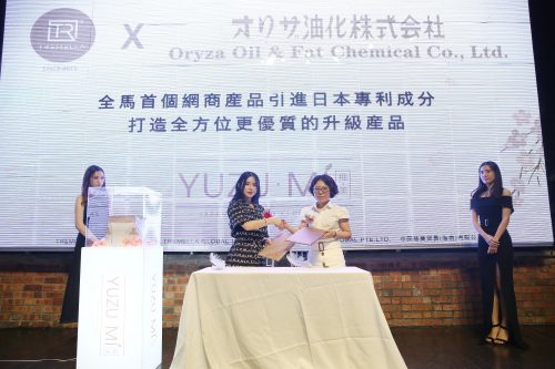 本地网商保健品牌TREMELLA®创办人Dollyn Chau周袀翎与日本原料公司Oryza Oil & Fat Chemical Co.,Ltd的代表经理Noriko Sakamoto坂本则子于今日进行盛大的专利授权签约仪式。TREMELLA®公司耗资巨额引进日本专利成份———Yuzusenol™,注入升级新品YUZU·MI柚·美。成为全马首个引进日本专利成分的网商品牌。