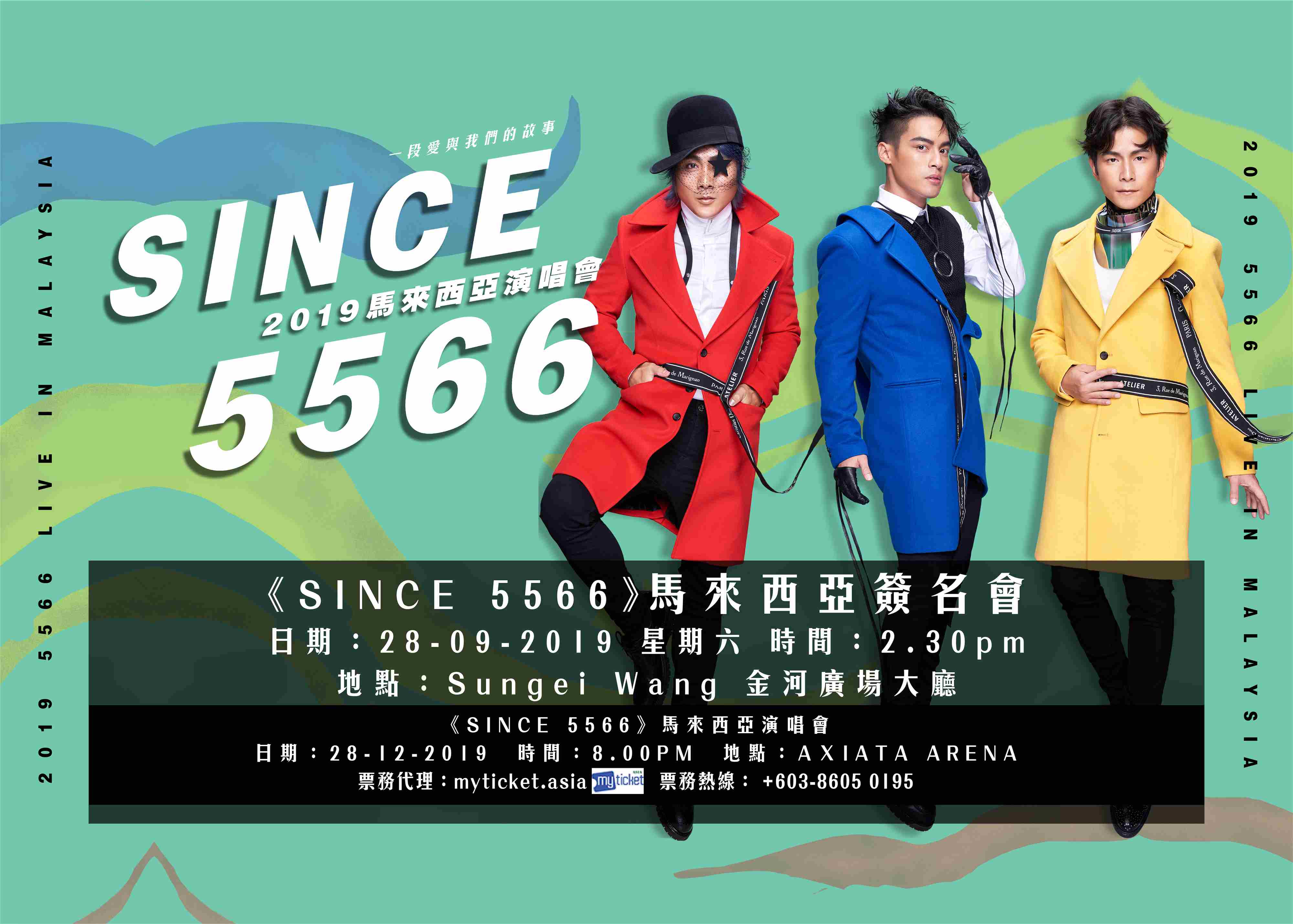 亚洲天团5566【SINCE 5566】马来西亚演唱会由AC MUSIC ENTERTAINMENT举办,而这场演唱会也是2019年末最受瞩目的压轴演唱会。想购票的粉丝朋友可到myticket.asia官网购买。