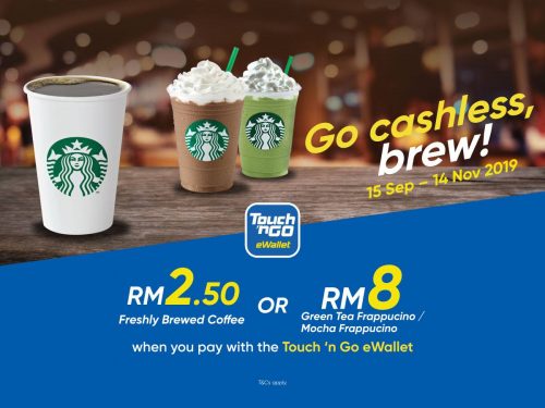 星巴克超值大优惠 特定饮料只需RM2.50 16 Sep , 2019 | 吃喝玩乐 喜欢喝星巴克?那可不要错过星巴克最新推出的超值大优惠!从即日起,特定饮料最低只需RM2.50,简直太划算了! 这项优惠是由大马星巴克和Touch’n Go电子钱包联手推出!促销期限从即日起至11月14日!你只要使用Touch’n Go进行付款,就能以最低RM2.50购得Freshly brewed coffee或RM8的Green tea Frappucino/Mocha Frappucino! 分享