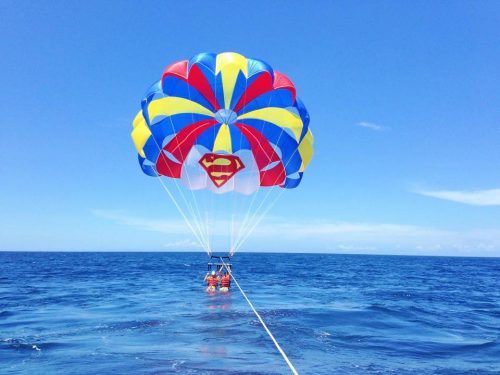 长滩岛似乎总是能够让人在不一样的空间、时间去体验美丽的风景!降落伞与快艇链接,通过快艇在海面快速行驶的速度撑开降落伞,让背上背着降落伞的人飞到空中,这时在空中看到的风景,绝对会让你感到惊喜万分!到达最高点之后,船家就会让降落伞缓缓下落到水面,再加速拉起,整个过程十分刺激!