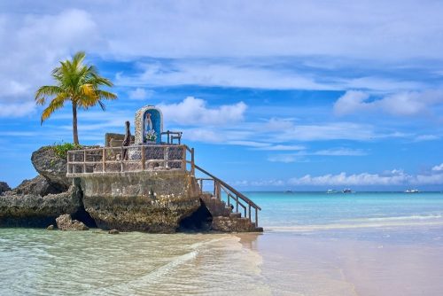 长滩岛的海中礁石上供奉着一座圣母像,形成了一座地标性的景点!潮涨时,海水在圣母礁岩周围起起伏伏,孤立在海水中央,这时你无法走到圣母像旁,只有在潮落的时候,才可以沿着海滩走到礁石边细细观赏!