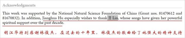 日前,浙江大学第二附属医院眼科的胡江华同学在其发表在Oxidative Medicine and Cellular Longevity 杂志的SCI论文(Review Article):The Function of Thioredoxin-Binding Protein-2 (TBP-2) in Different Diseases 的致谢部分,感谢了歌手林俊杰,表示在过去十年里,林俊杰的歌曲给了她强大的精神支持。