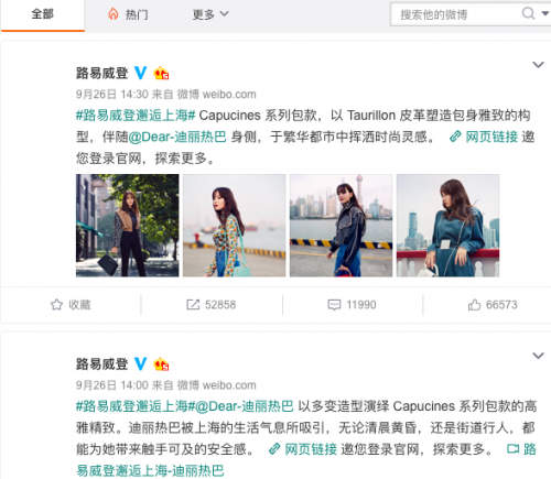国际大牌官宣范冰冰为全球代言人 消息一出引热议 28 Sep , 2019 | 娱乐前线 某国际大牌在微博等各大社交网站官宣范冰冰为“全球代言人”,并曝光了其演绎该品牌新品的街拍美照,消息一出引发热议。 随后,该品牌这条微博已不可见,疑似被删掉。也有网友称,该微博只是设置了权限,仅自己可见而已,并没有删博。原因是品牌保护艺人及品牌,正常保护手段而已。 该微博现已不可见 分享