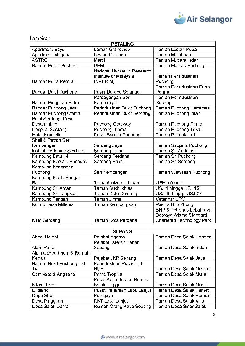 昨晚的污染事故,影响了八打灵县、乌冷县、瓜冷县和雪邦县共204个地区的37万2031个水供户头。