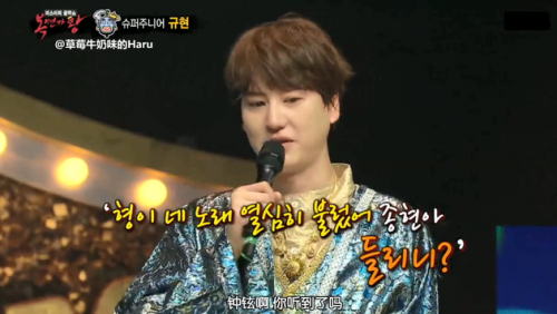 曺圭贤演唱《Hyeya》怀念钟铉:是他首个SOLO歌曲 30 Sep , 2019 | 娱乐前线 新一期MBC《蒙面歌王》中,此前获得了五连冠的Genie演唱了SHINee的《Hyeya》,最终以46:53不敌对手,揭面为SuperJunior 曺圭贤。 圭贤红着眼眶表示:“这是我们钟铉首次发表的SOLO歌曲,在我服兵役的时候发生了那样的事情,哭过很多次。” 最后圭贤流下了眼泪说:“我想有一天在舞台上对钟铉说‘我很努力的在唱你的歌’,所以就准备了这首歌曲。我想钟铉应该很高兴听到我唱这首歌的。” 分享