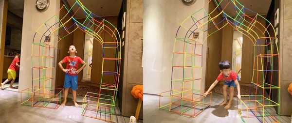 照片中,由数根多色细棒拼成的玩具拱门,看起来非常费时且作工繁杂,黑人配图PO文写道:“两兄弟努力完成的新作品。”众人全都看傻眼,这座比飞飞翔翔高出好几颗头的玩具拱门,居然是两人一起合作打造的,看起来就算是成人做出这种成品也需耗时不少,都留言大讚:“这空间逻辑太厉害了”、“太强大了!”