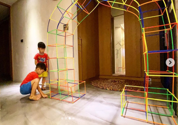 陈建州(黑人)与范范结婚后,育有一对4岁双胞胎儿子“飞飞翔翔”,他时常在社交平台上分享兄弟俩平日生活点滴。近日又上传飞飞翔翔“手拼超高拱门”。超狂成品让网友全都看傻眼,不敢置信居然是出自两位4岁小孩,纷纷惊呼:“这是什么样可怕的天份。”
