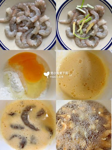虾仁,料酒,盐,葱姜,淀粉,鸡蛋,白胡椒粉,