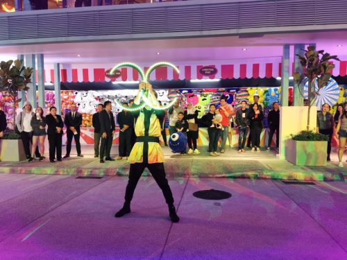 此外,星光嘉年华的游戏区不仅有好玩的游戏,还有丰富奖品等你抱回家!快到各个游戏区测试自己的手气和技巧吧!比如Shooting Star射击、Milky Way Spin旋转幸运轮盘、Asteroid Toss投篮、Topple Galaxies瓦解金字塔,以及Pick A Star钩鸭子等。