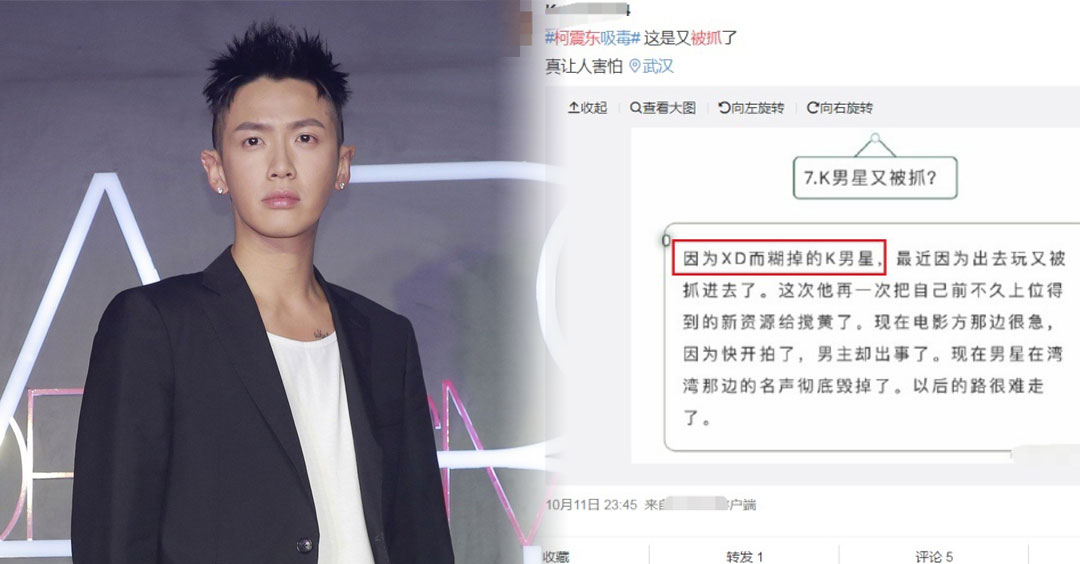 其中部分用户以“K姓男星”作为代称,另一部分则直接指出柯震东的全名,但爆料讯息均指出该男星涉嫌嫖妓被捕,并透露该事件惹得其参演新电影的片方不爽,并已经出面摆平了此事。