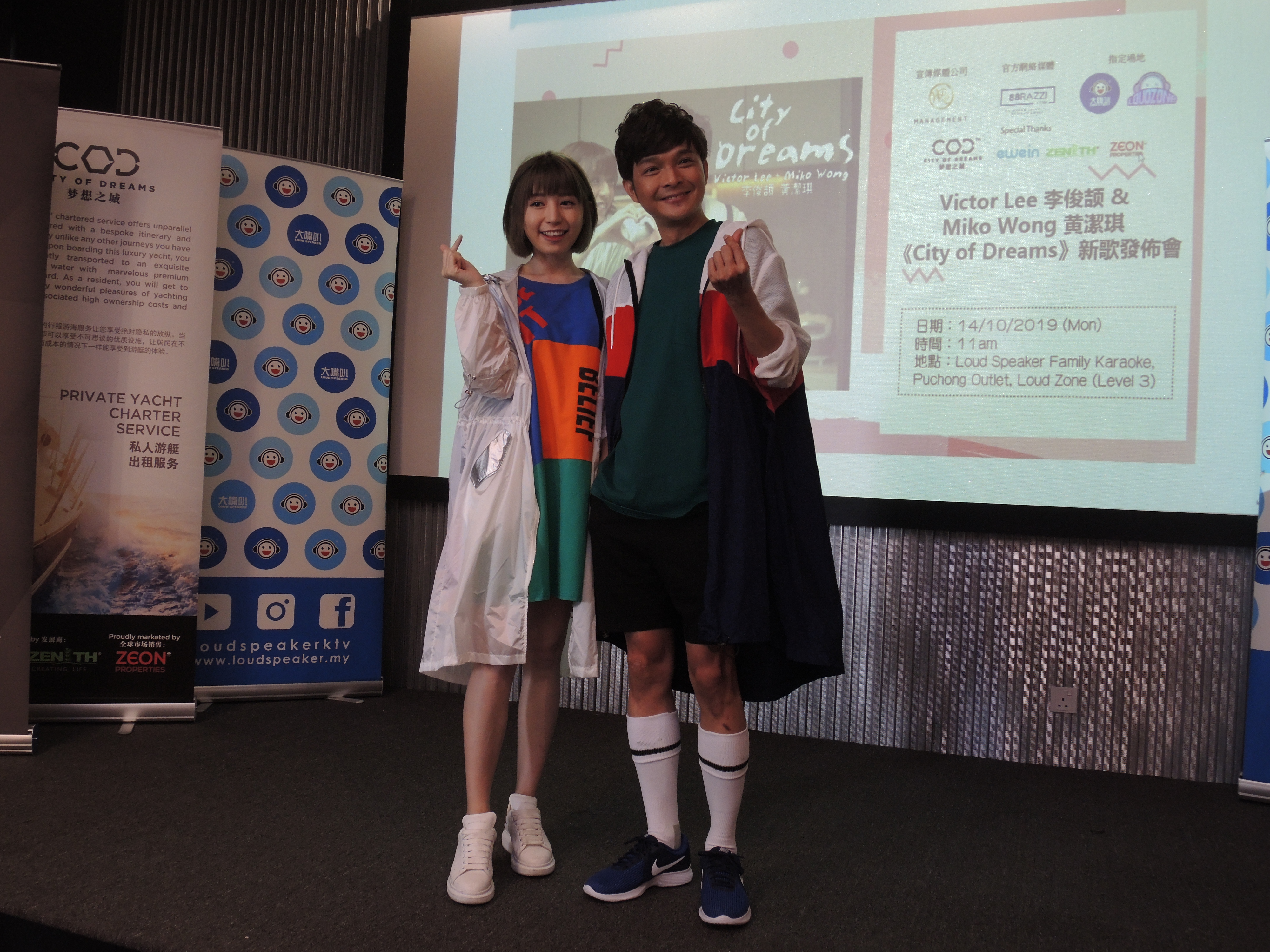 两人合唱新歌《City of Dreams》是由伍家辉制作,Miko笑言从小听对方歌曲长大,表示对首次踏入录音室感到紧张,而Victor则称伍家辉是个严格的制作人,虽然两人私下很熟,但依然会紧张害怕。主持人询及37岁Victor为何会邀约Miko合唱,因两人年龄差距大,Miko当下也表示好奇,Victor透露在社交网站追踪她许久,更谓现在终于了了心愿,心境更犹如回到20岁青春期,言语间都流露出爱意了!