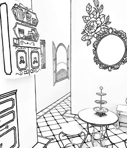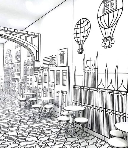 2D的店内设计采用黑白漫画风,里面有各种不同的漫画场景,供你打卡拍照,像是课室、浴室及带有日式榻榻米的客厅等!全部装潢看起来都很有2D视觉的效果,仿佛让人走进漫画世界一样,非常有趣!