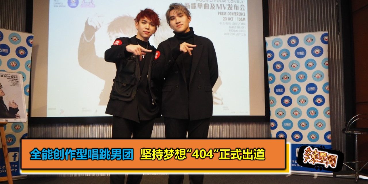 大马新晋男团404(Four O Four)出道记者会在Puchong 大嘴叭卡啦OK隆重引爆。成员Jackie和Eric以一身有着个人色彩的黑色打歌服,以及带着首播主打单曲Lonely和MV亮相。